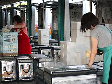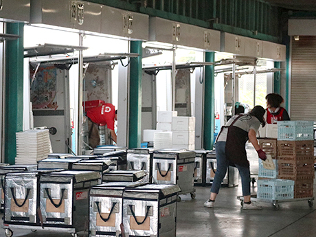 ご家庭にお届けする商品を車両に積み込む作業です。