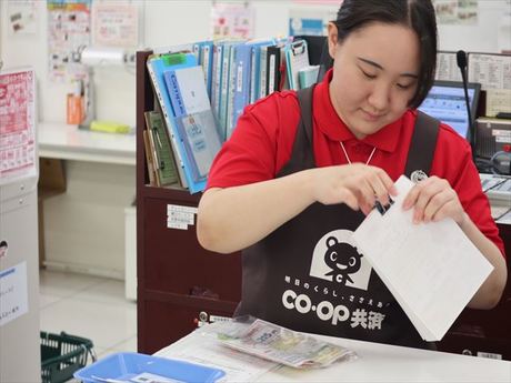 コープの店舗内のカウンターにて、お客様対応をお願いします。